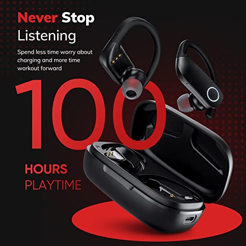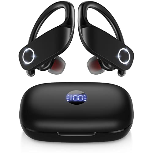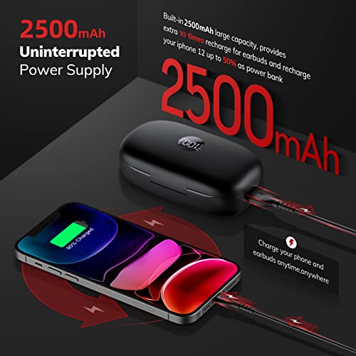 ♫【Wireless Earbuds with Multifunction Charging Case】: Each sports headphones can get 10 hours of playback from a single charge, long enough to power you through almost any workout. 2500mAh charging case gives up to 150 hours of continuous music time and also be used as an emergency charger for your smartphones or other devices. Never worry about battery life even on long trips.