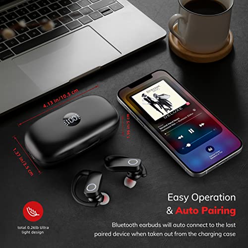 ♫【Touch Control&Smart LED Digital Display】 Features with touch control sensors, HINYCOM wireless earbuds can largely minimize the pressure to your ears when you touch the button for various functions, totally wireless high-performance earphones. The smart LED digital screen can check battery consumption display anytime, you can know when is the best time to charge.